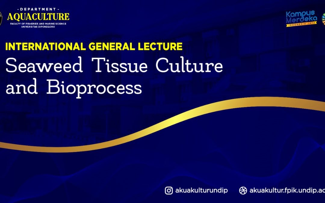 Departemen Akuakultur FPIK mengadakan International General Lecture dengan judul “Seaweed Tissue Culture and Bioprocess” pada hari Rabu, 19 Oktober 2022 melalui platform Zoom. Rumput laut merupakan salah satu komoditas yang memiliki prospek menjanjikan, tetapi ketersediaan bibit unggul dan berkualitas serta pemanfaatannya masih perlu menjadi perhatian. Kegiatan tersebut menghadirkan 2 narasumber yang merupakan pakar di bidang kultur jaringan dan biproses yaitu Dr. Gabriel Tirtawijaya yang merupakan peneliti di Silla University, Korea, Dr. Maya Saptiani yang merupakan alumni dari FPIK Universitas Diponegoro. Acara ini diikuti lebih dari 170 peserta secara online, baik dari kalangan civitas akademika UNDIP maupun dari instansi lain.