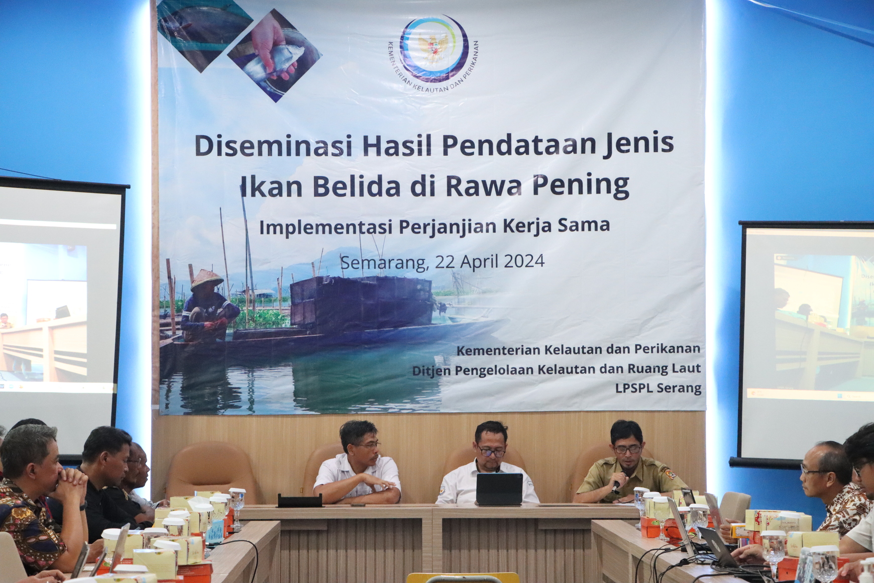 FPIK, SEMARANG – Pada hari Senin (22/4) kegiatan Diseminasi Hasil Pendataan Jenis Ikan Belida di Rawa Pening telah sukses dilaksanakan bertempat di Ruang Sidang Senat, Gedung Dekanat, FPIK Undip Kampus Tembalang. Acara tersebut merupakan acara yang diadakan oleh Loka Pengelolaan Sumberdaya Pesisir dan Laut (LPSPL) Serang dalam rangka implementasi kerja sama dan penyediaan data informasi jenis ikan dilindungi dan/atau terancam punah. Kegiatan ini dihadiri oleh perwakilan dari Fakultas Perikanan dan Ilmu Kelautan Undip, Direktur Konservasi Ekosistem dan Biota Perairan, Dinas Kelautan dan Perikanan Provinsi Jawa Tengah, Fakultas Pertanian Universitas Tidar, Badan Pengendalian dan Pengawasan Mutu Hasil Kelautan dan Perikanan (BP2MHKP) Semarang, Balai Besar Penangkapan Ikan (BBPI) Semarang, Balai Karantina Pertanian Kelas I Semarang, Stasiun PSDKP Cilacap, Penyuluh Perikanan Kabupaten Semarang, Kelompok Masyarakat Pengawas Rawa Pening, dan Pelaku Usaha Perikanan di Rawa Pening. Kegiatan ini bertujuan untuk berdiskusi tentang Kebijakan Konservasi Jenis Ikan, Upaya Konservasi Jenis Ikan, Pendataan Jenis Ikan Belida di Rawa Pening. Acara diawali dengan sambutan singkat dari Kepala Dinas Kelautan dan Perikanan Provinsi Jawa Tengah, sambutan perwakilan FPIK Undip, yaitu Prof. Agus Trianto, ST., MSc., Ph.D., serta dari Kepala LPSPL Serang. Kemudian kegiatan dilanjutkan dengan diskusi yang dimoderatori oleh Anhar Muslim, S.St.Pi, M.Si. dari LPSPL Serang, guna membahas topik-topik yang sudah ditetapkan. Diharapkan diseminasi ini dapat memberi dampak positif terhadap kelangsungan biota ikan di Rawa Pening.