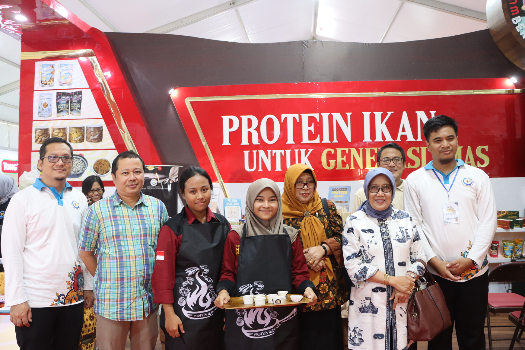 Pameran yang berlangsung selama tiga hari, dari Kamis (27 Juni) hingga Sabtu (29 Juni), menjadi ajang bagi mahasiswa FPIK Undip bersama Dirjen PDSPKP untuk memperkenalkan inovasi perikanan. Dengan booth pameran yang mengusung tema “Protein Ikan: Untuk Generasi Emas”, mahasiswa FPIK Undip berkesempatan memperkenalkan inovasi bubuk Hidrolisat Protein Ikan (HPI). Inovasi ini bertujuan untuk meningkatkan asupan protein masyarakat dan menjadi solusi dalam penanganan stunting. Bubuk HPI ini memiliki keunggulan karena fortifikasinya tidak membuat makanan berbau amis serta tidak mengubah rasa dan warna, sehingga cocok bagi masyarakat yang tidak suka mengonsumsi ikan secara langsung.