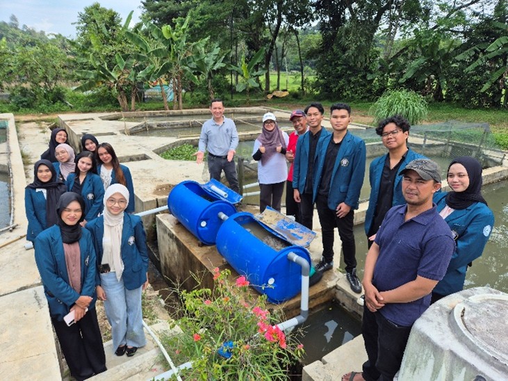 A team of lecturers from the Department of Aquaculture, Faculty of Fisheries and Marine Science, Diponegoro University, consisting of Dicky Harwanto, S.Pi., M.Sc., Ph.D., Prof. Dr. Ir. Sarjito, M.App.Sc., Dr. Ir. Diana Rachmawati, M.Si., Dr. Diana Chilmawati, S.Pi., M.Si., Ristiawan Agung Nugroho, S.Pi., M.Si., and students of Aquaculture Departement conducted a Community Service Program at POKDAKAN Mina Rukun Makmur, Gunungpati, Semarang, on November 1, 2025. The program aimed to provide knowledge about water quality management, particularly the use of filtration-based aquaculture systems and their application in koi grow-out culture, as well as to enhance farmers’ technical skills in koi cultivation following the Good Aquaculture Practices (CBIB) standards.