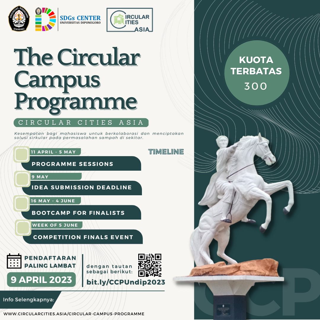 The WCU Task Force and Undip SDGs Center invite STUDENTS to take part in the 2023. Undip WCU Student Outbound Program “The Circular Campus Programme” from Circular Cities Asia, Singapore.