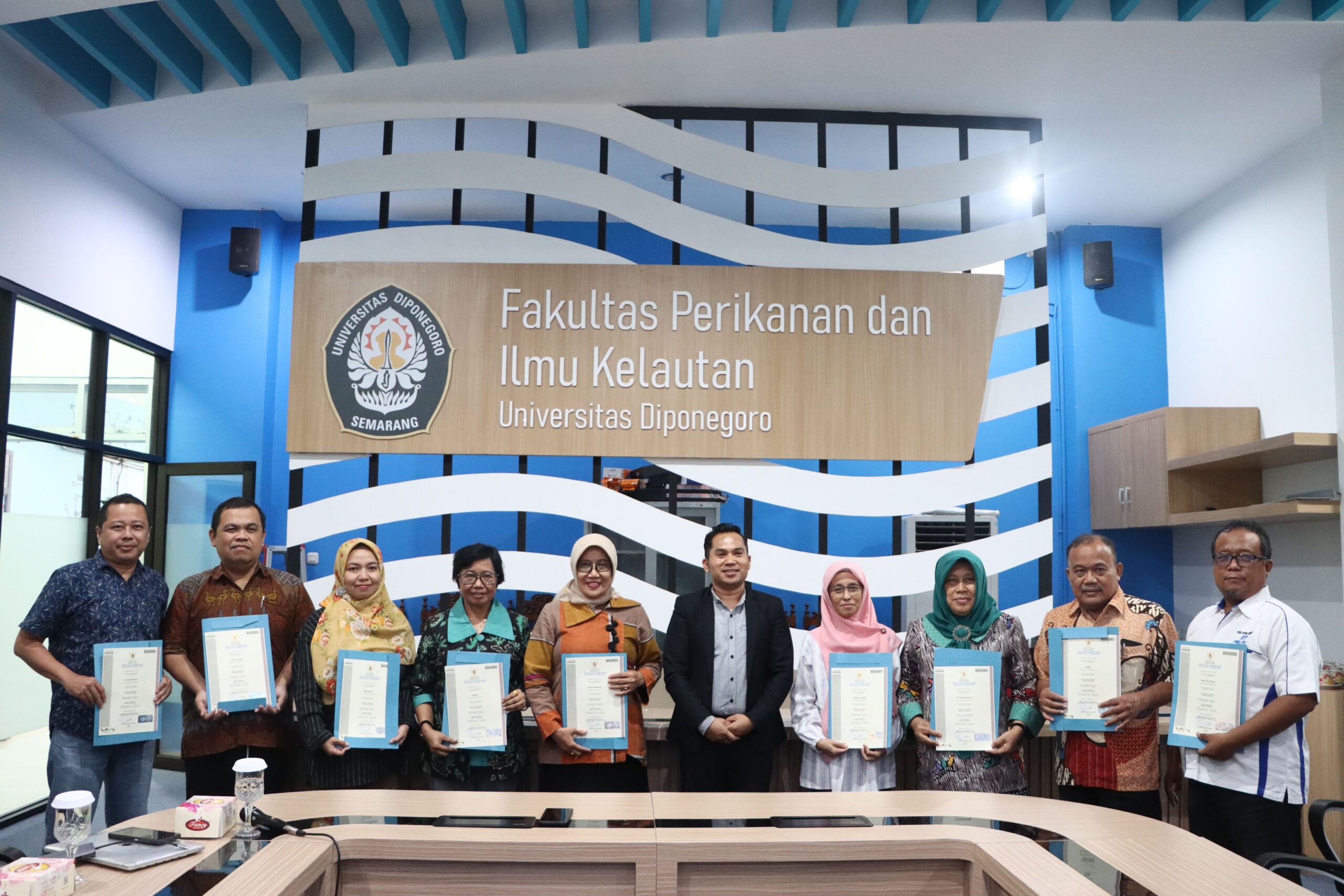 FPIK Semarang (1/03), the National Professional Certification Agency (BNSP) Competency Assessor Certificate was handed over to the 2024 competency assessors of the Faculty of Fisheries and Marine Science, Diponegoro University. Arief Budhi Dharma, as one of the BNSP Master Assessors, handed over the certificate at the FPIK Undip senate meeting room, Building A, Tembalang.