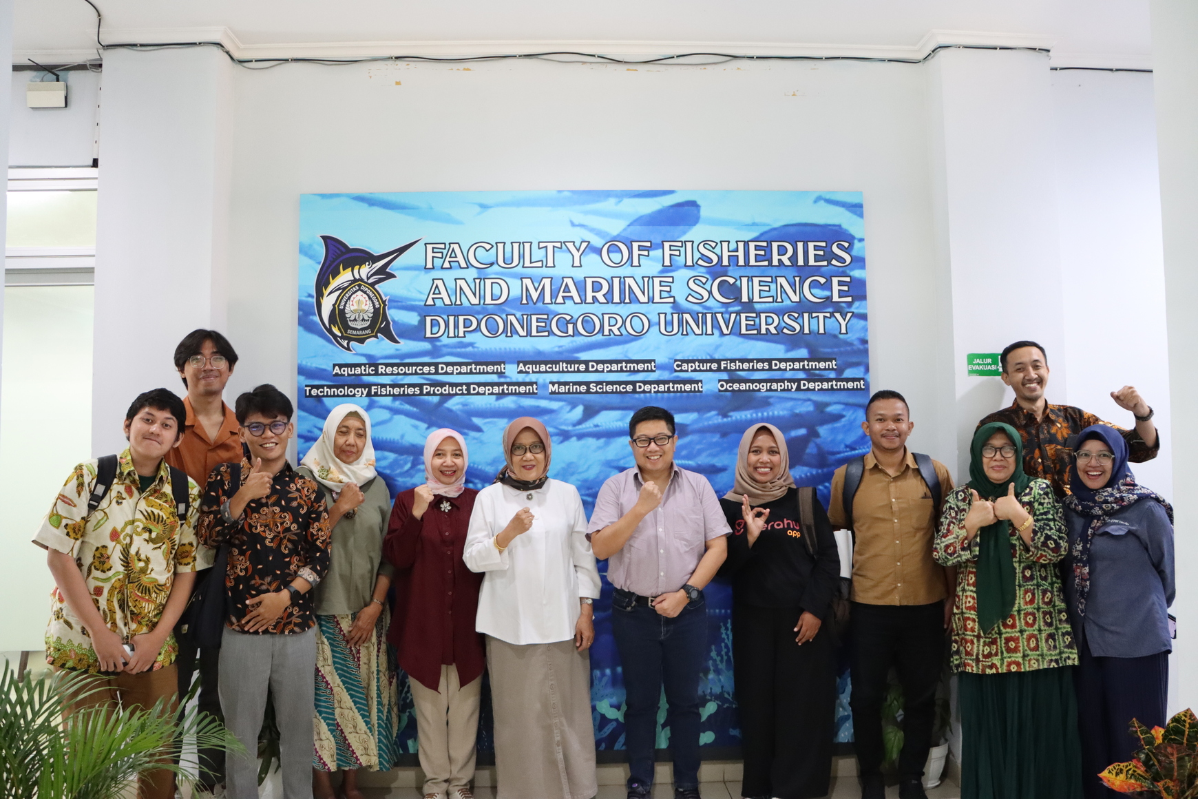 During the visit, the group was welcomed by Prof. Ir. Tri Winarni Agustini, M.Sc., Ph.D, as the Dean of the Faculty of Fisheries and Marine Science, the Vice Dean for Resources, Prof. Dr. Aristi Dian Purnama Fitri, S.Pi., as well as FPIK Undip lecturers, namely Prof. Dr. Ir. Eko Nurcahya Dewi, M.Sc., Prof. Dr. Ir. Diah Permata Wijayanti, M.Sc., and Dr. Ir. Sri Redjeki, M.Si. The discussion focused on updating the progress of the ongoing FIP program. The FIP program is a strategic initiative that aims to improve sustainable fisheries practices and products in Indonesia. In this meeting, both parties shared information, data, and exchanged constructive input to ensure the program runs according to plan and reaches the target.