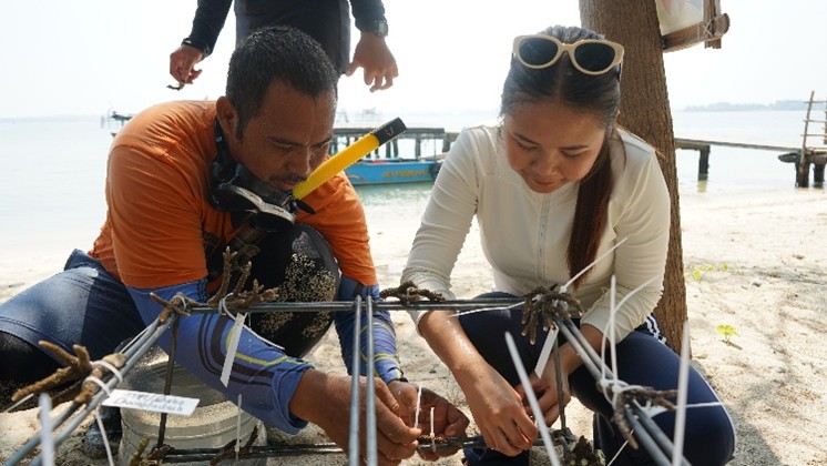 The second day marked the highlight of the field activities on Panjang Island, where participants took part in coral transplantation and coastal clean-up initiatives. Through these simple yet meaningful actions, participants made real contributions to the rehabilitation of marine ecosystems and the preservation of Jepara’s coastal environment.