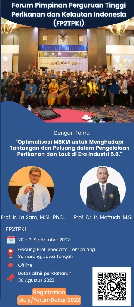 FPIK Undip successfully held the Indonesian Fisheries and Marine Higher Education Leadership Forum (FP2TPKI) and a National Seminar with the theme “Society 5.0 and Disaster Resilience for Sustainable Coastal Development” which was held on 20-21 September 2022 at Prof. Building. Soedarto Undip Tembalang Campus. The activity was attended by the Minister of Maritime Affairs and […]
